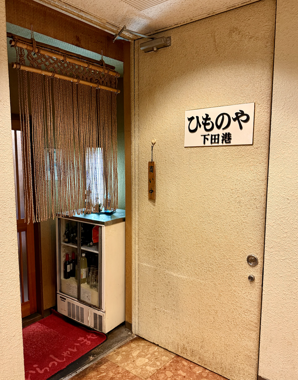 歌舞伎町北側のラブホゾーン近くにある小さなビルの二階。スナック的な雰囲気だけど「ひものや 下田港」さんって書いてあるからここでいいんだよな。