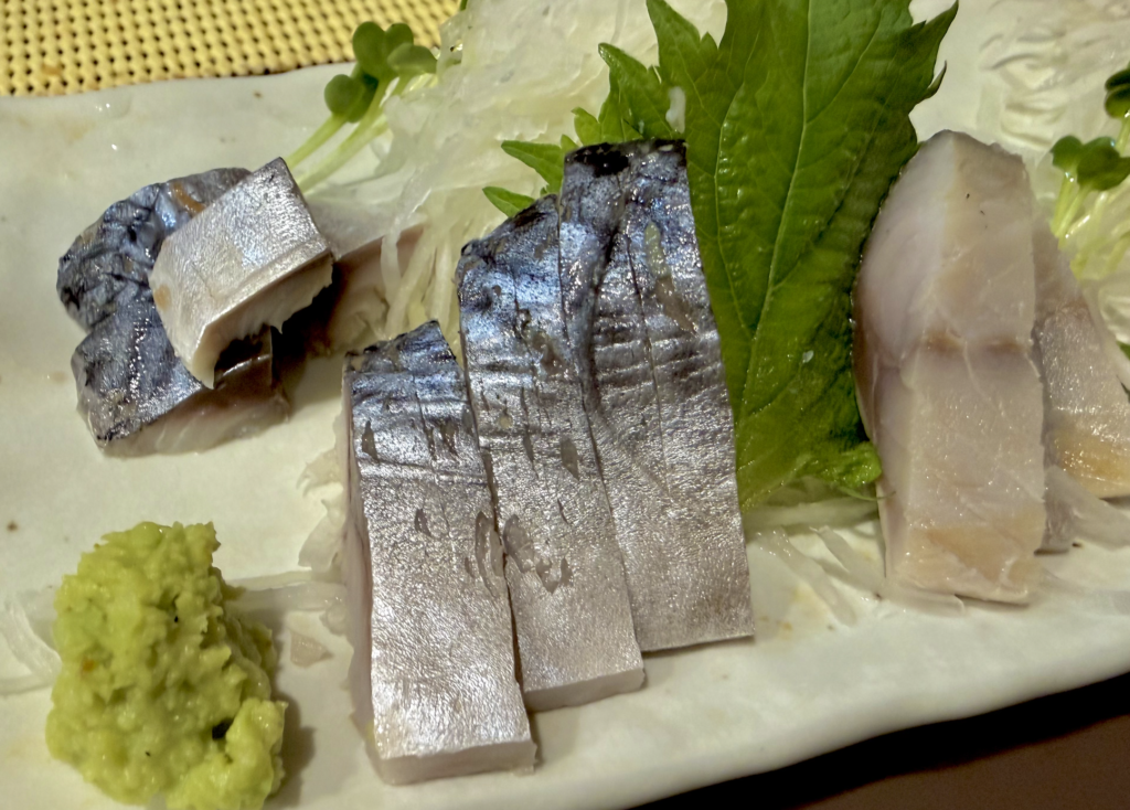 なるほど伊豆の方の出身、だから店名も下田港なワケですね。いや〜参った、キリッと締まったサバとワサビなんてお酒が止まらない組み合わせだよ。