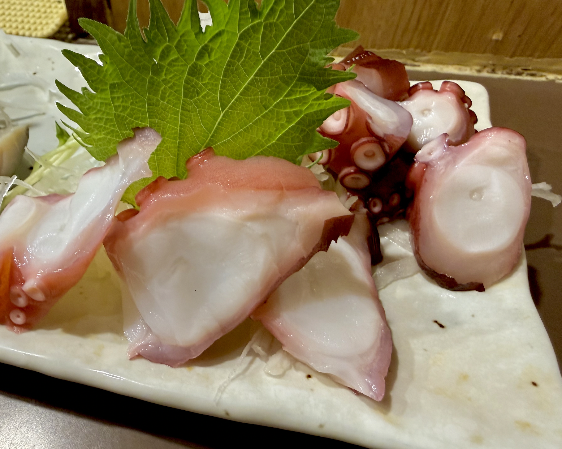 この煮物の本体かもしれないマグロは切れたか、ざんねん!ではタコとシメサバをお願いします。