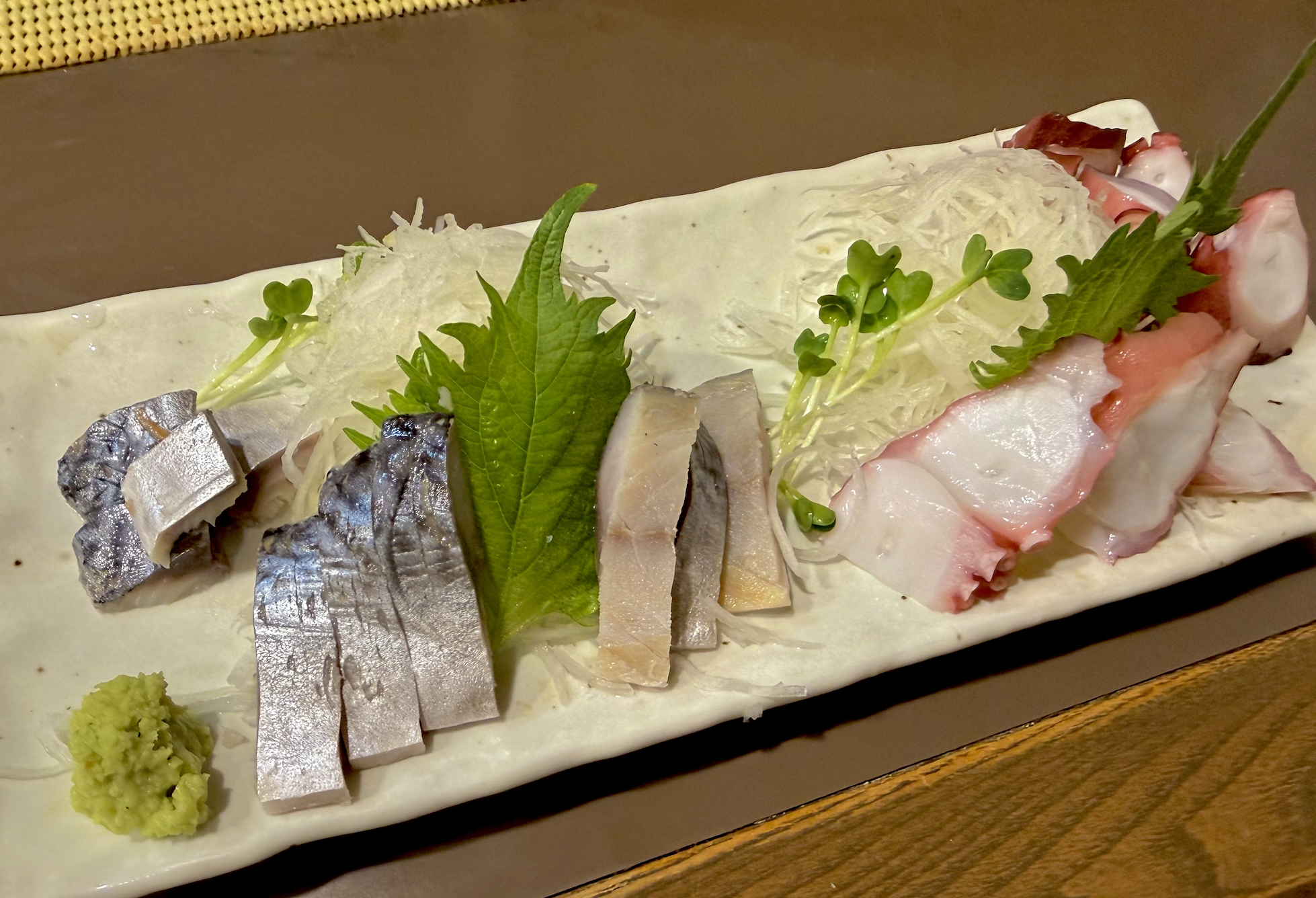 大将「今日はマグロが終わっちゃって、白イカ・タコ・シメサバ・昆布締めといったところかな」