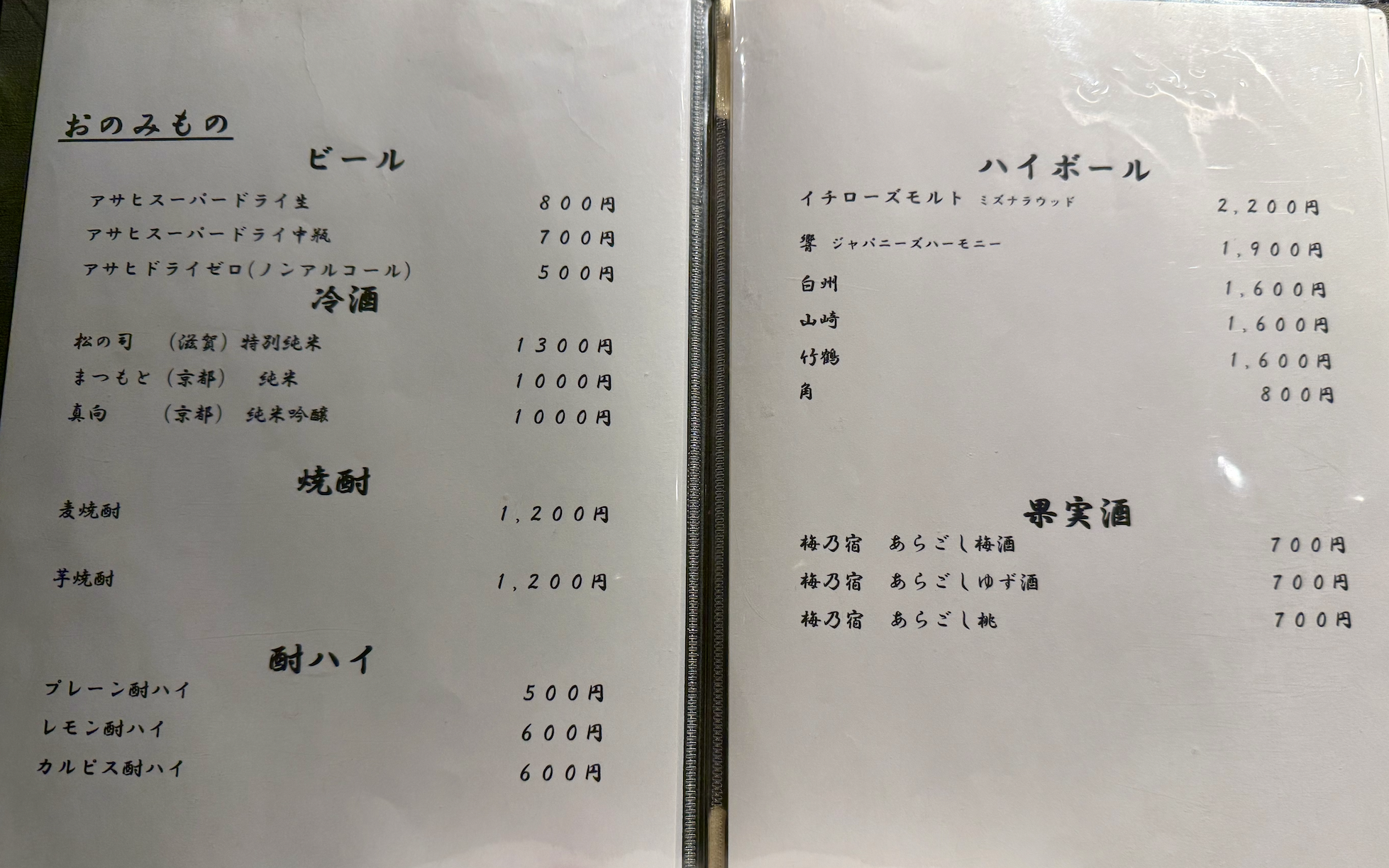 メニューは13,500円のおまかせコース。よって注文するのは飲み物だけ。京都に来たからまつもとをお願いしましょう。