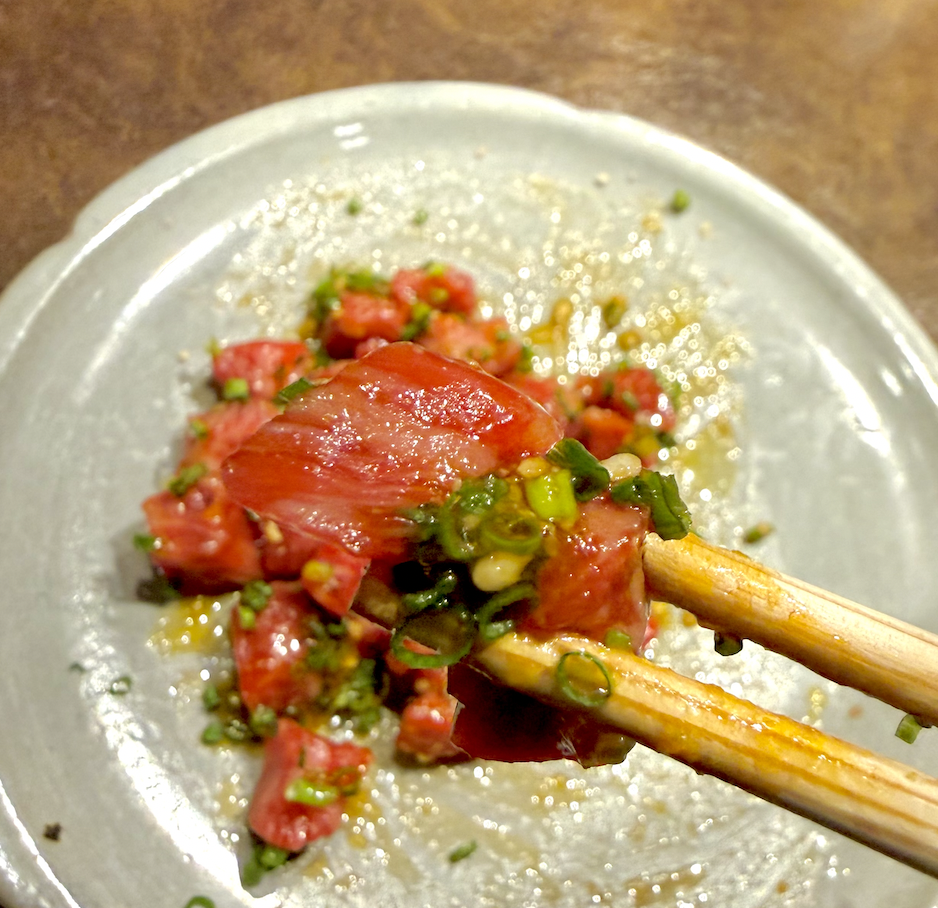 すごい。うまい、うますぎる。赤身の旨味とサラリと溶ける牛脂がたまらない生肉と、やや甘味の強いタレのバランスが素晴らしい。人生最高ユッケかもしれん。