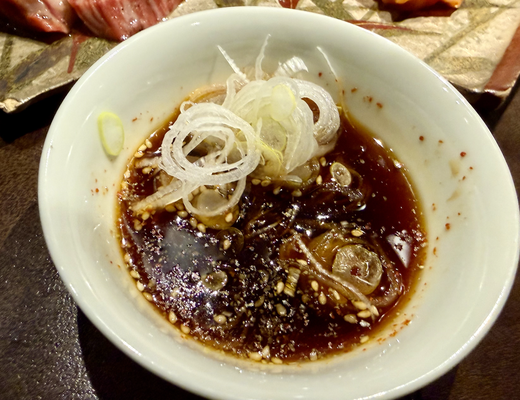 つけダレの方にはネギやらゴマやらいろいろ入っておりますね。