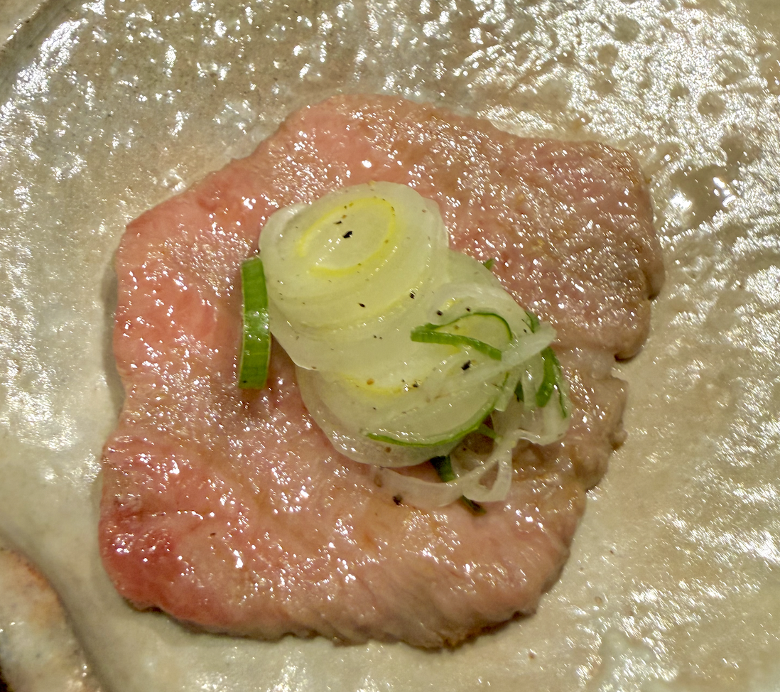 軽く炙る程度に焼きましたらネギをのせて‥‥バカうまのタンに牛脂が豊かに香って、ネギがシャキッと味を引き締めて‥