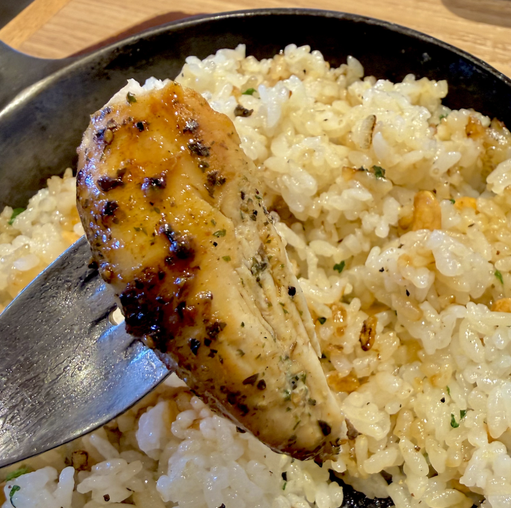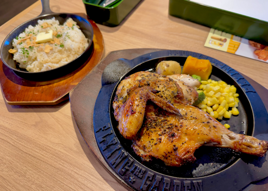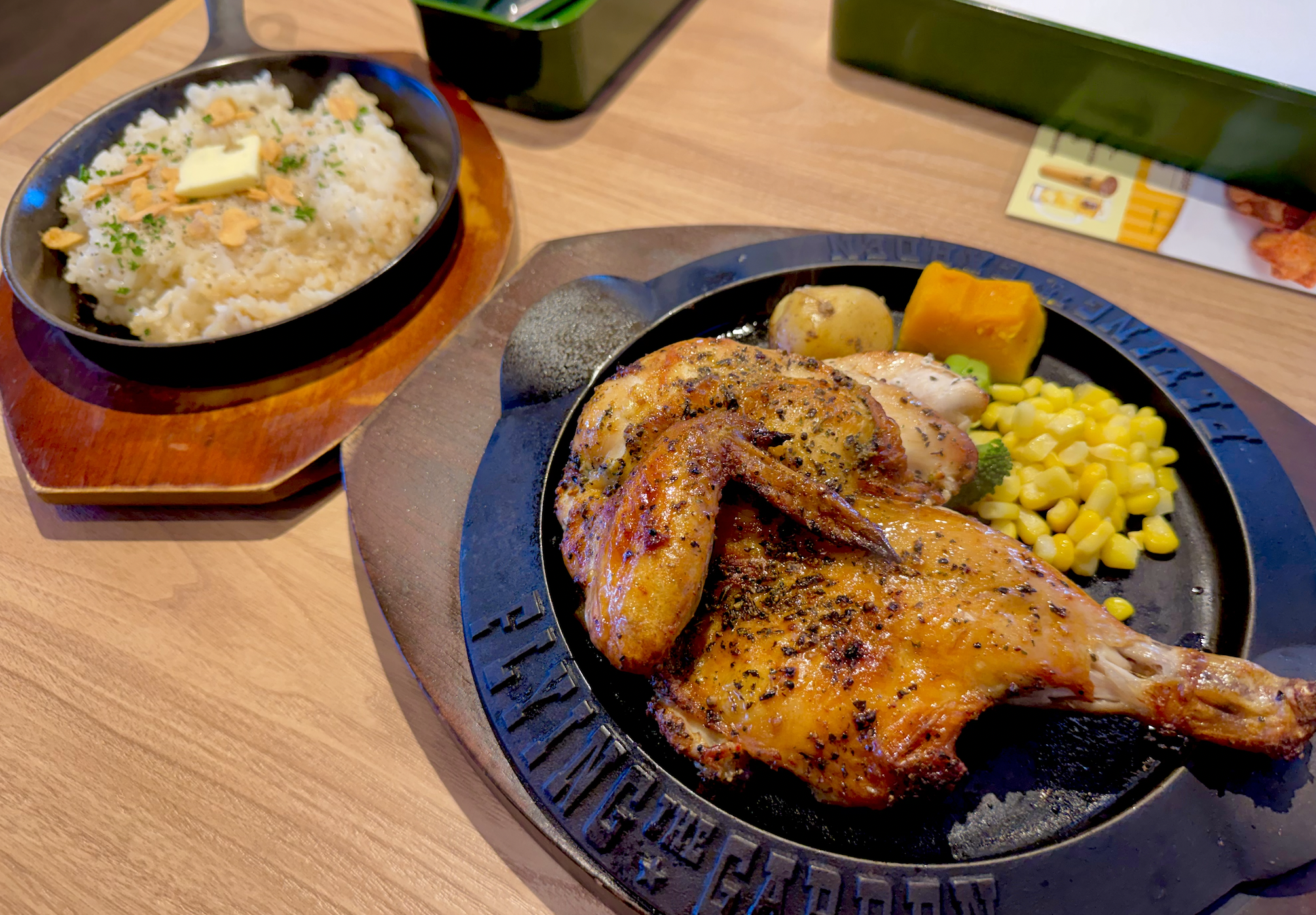 はい、ローストチキンとガーリックライスのセットが登場!ソースがないので鉄皿サウンドは控えめです。