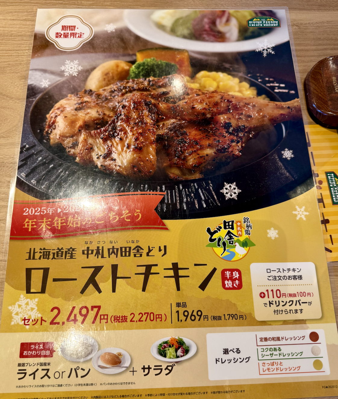 チキンと言えばケン‥いや、北関東ではフライングガーデン!年末年始のご馳走・チキン半身焼きだ! フライングガーデン 太田飯塚店(太田市飯塚町)