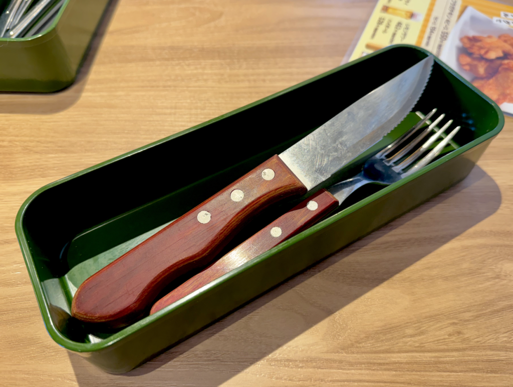 いきなりデカいナイフとフォークが来た。あれ、これってさわやかブレード爆弾ハンバーグを切り分けてくれるヤツじゃないの?これでチキンを解体せよと言うことか。