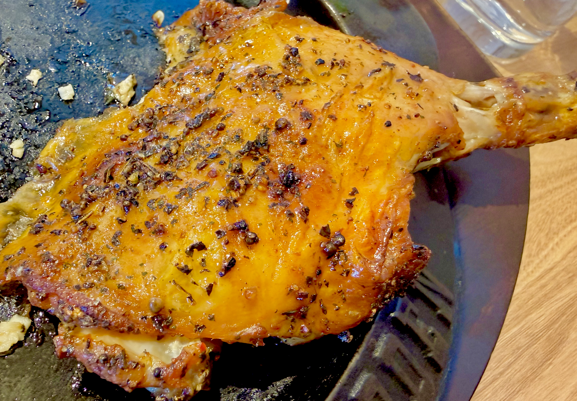 佐久の「むしり」みたいな半身のご立派なチキン。なかなかのお値段と思ったけど、金額相応のボリュームがありそうです。う〜む、音は静かだけど香りは素晴らしいね。