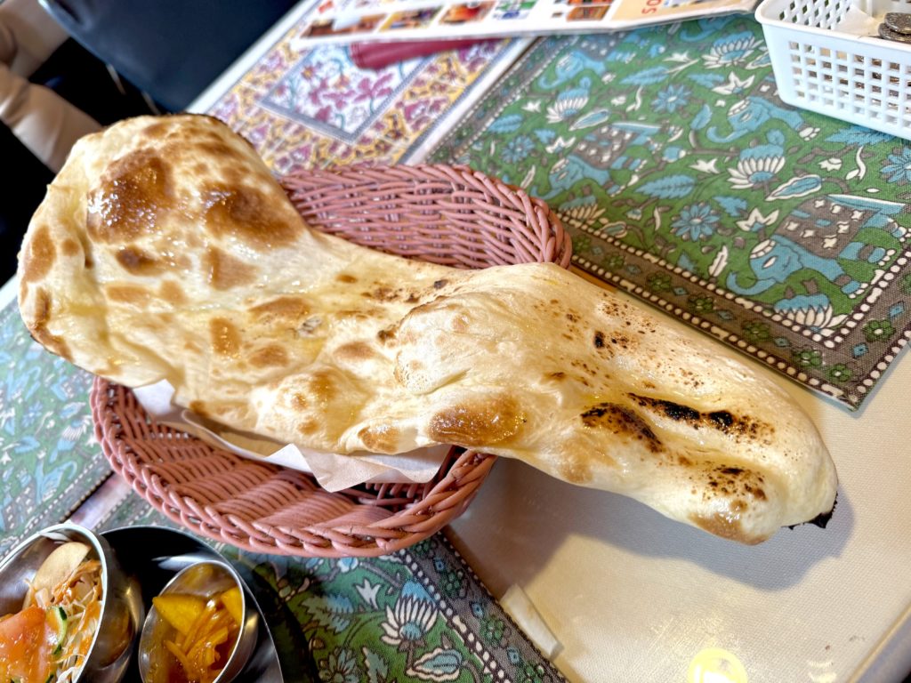メルカトル式グリーンランドの如く広大なナン。ギーだかバターだかのテラテラとした光沢は、腹持ちがさらにアップの印。