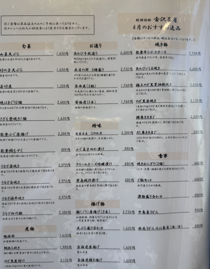 メンバーが揃うのは夕食から。お昼は一人ということで、ずっと気になっていた「料理旅館 金沢茶屋」さんに食事だけの予約を入れておきました。