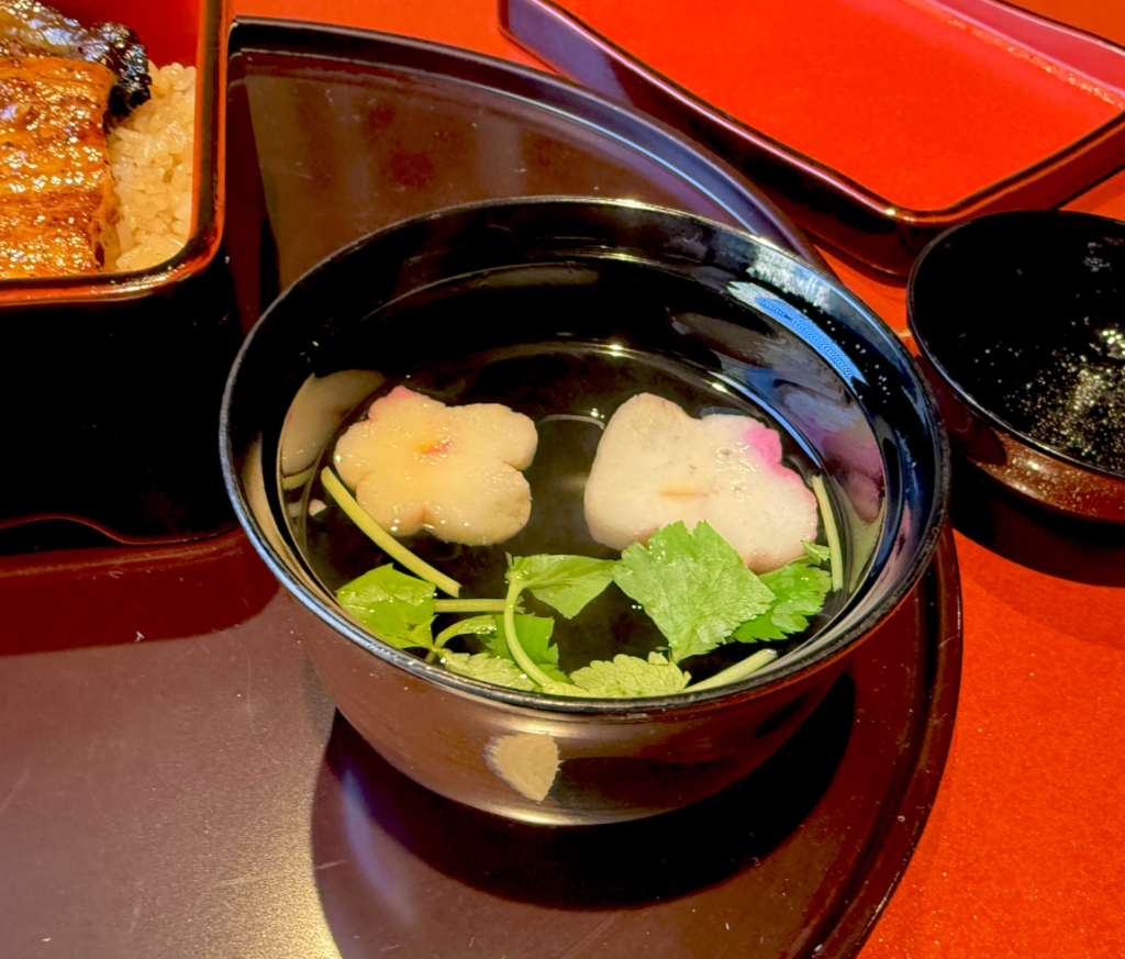 肝吸いではなく通常のお吸い物です。カツオがふんわり香る料亭の味。