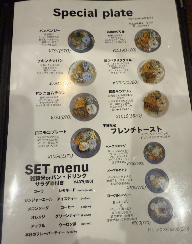 カウンター席に案内していただきまして、メニューを‥おやリニューアルがあったみたいですね。プレートメニューが大幅にパワーアップしたようだ。